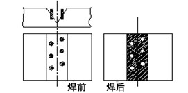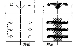 此種焊接方法主要用于工作應(yīng)力較大,工件相對較厚的焊縫,如大型機器的底座等工件。鉚釘可用碳鋼承擔(dān),焊鉚釘時可用J507焊條焊接,主焊縫仍舊用鎳基182焊條。焊接時先將坡口內(nèi)焊滿,最后焊鉚釘,使鉚釘和坡口內(nèi)焊縫形成一個整體焊縫。