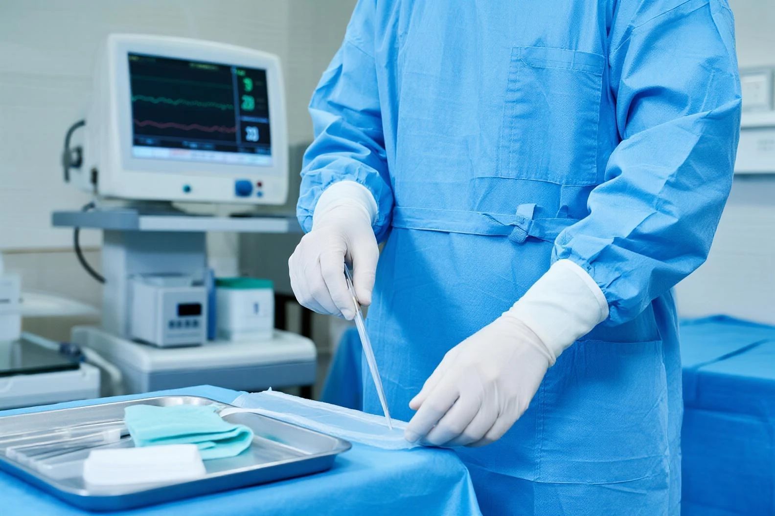 In a medical garment factory in Zhejiang, quality control engineers use magnifying glasses to inspect newly produced surgical gowns. Tiny, micron-level burrs along seam lines are marked as defects. These nearly invisible imperfections can snag surgical gloves, harbor bacteria, and become potential sources of contamination.