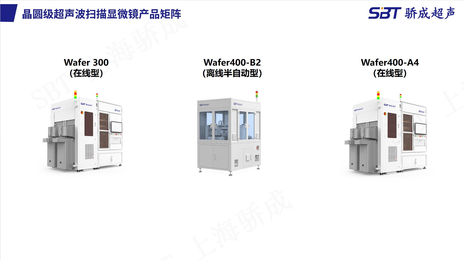 驕成超聲最新推出的Wafer400系列超聲波掃描顯微鏡(超聲波bubble檢測設(shè)備),是在Wafer300系列基礎(chǔ)上的升級版本,可檢測6、8、12英寸晶圓,并提供在線全自動型(Wafer400-A4)、離線半自動型(Wafer400-B2)等多種方案,適配客戶的不同需求,主要性能指標(biāo)對標(biāo)國際一線品牌,并在掃描效率、軟件算法、智能化等方面取得多項突破。